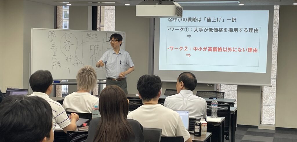 YouTubeで多くの動画を公開されている柴山政行講師にご登壇いただきました。「コンサルで付加価値を高める方法」について、多くのことを教えていただきました。多くの珠玉の言葉の中でも、特に印象に残ったのは「1人の顧客を泣くほど感動させろ」でした。他にも「新規より既存」「マーケットがすべて」「報酬単価の決め方」「法人研修に使えるネタ」など、根拠と共に多くのことを高速で説明いただき、受講生は一言も聞き逃すまいと高い集中力で聴講していました。柴山講師には懇親会にもご参加いただき、多くの受講生に体験談やアドバイスを共有してくださいました。