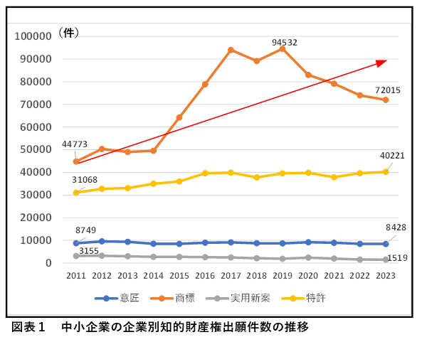 特に中小企業による商標出願の増加は、ブランド戦略の有効な手段として商標が積極的に活用されていることが考えられる。