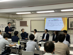 中央支部は2025年10月1日(水)、小伝馬町にある中央支部事務所およびオンラインにて「秋まつりプレセミナー」を開催しました。本セミナーは、特に中小企業診断士として登録したばかりの新人会員を主な対象とし、資格取得後の活動の始め方やキャリアの広げ方をリアルに学ぶ機会として企画されました。会場参加12名、オンライン参加10名、計22名の申し込みがあり、活発な意見交換が行われました。