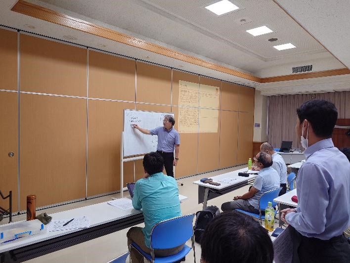 講義終盤には、サンプル事例を使っての参加型のグループワークもありました。講義内容や参加者のこれまでの経験を共有してのグループディスカッション、その後のディスカッション内容の共有・発表、ホワイトボードも活用しその発表に基づく松井会員の分析講義が印象的でした。講義内容だけではなく、セミナー手法を学ぶ場としても目から鱗の充実した2時間でした。