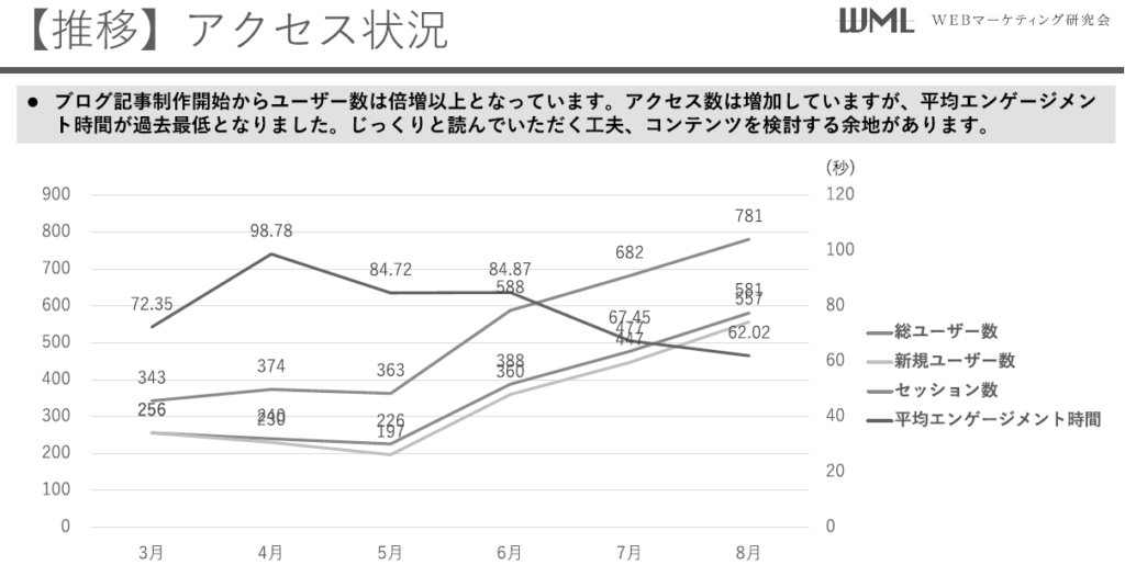 (1) コンバージョン率の向上:アクセス増が、問い合わせや受注件数の増加に十分結びついていない。CTA(行動喚起)の最適化や、より具体的なソリューション提案記事の拡充が求められる。