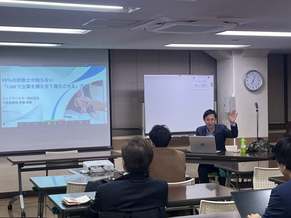 セミナーでは、なぜLINEがあらゆる業種で“利益を生む接点”になるのか、伊藤氏ご自身の支援実績も交えながら、クライアントを“勝たせる”支援の組み立て方、診断士として“稼げる実践スキル”をどう獲得するかをご説明いただきました。セミナーの中では、日本国内でのLINE利用率の高さや、メールなどと比較した際のメッセージ到達率・反応率の優位性にも触れつつ、「まずは顧客との接点をLINE上に集約し、そこから関係性を育てていく」という支援の基本設計が示されました。