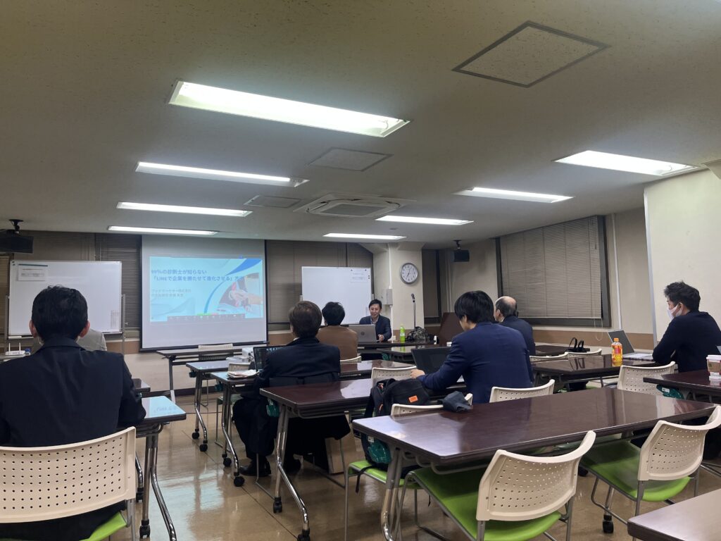 「顧客との関係性強化」を核に、売上UP・採用強化・業務効率化を同時に実現するLINEマーケティング支援の原則と実装手順を体系的に解説。会場に集まった12名の参加者の中には、既にLINE活用の支援や、日頃からマーケティング支援を行っている方もいました。一方で、これから支援する意欲のある方の参加も多く、中小企業診断士のデジタルマーケティングへの関心の高さが伺えました。