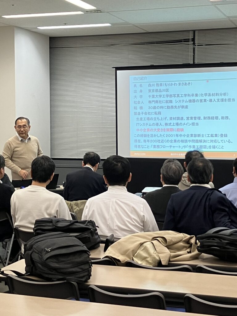 2025年12月4日開催の城南プログラムのマイスター制度「経営力再構築伴走支援の成功事例と失敗事例 (対面講座)」に参加させていただきました。講師は東京都中小企業診断士協会会長の森川雅章会長でした。参加人数も15名と絞られていたため、大人数のセミナー形式とは異なり、講師との距離も縮まり、先生の温和な性格も手伝って、和やかなムードでお話は進められました。