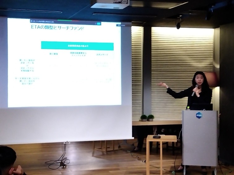 最初に話したのは、サーチファンド支援を行う嶋津紀子氏です。大手コンサル会社やアメリカの大学院で学んだ経験をもとに、日本でETAを広める活動をされています。サーチファンドとは、会社を探して買い、経営を引き継ぐ仕組みのこと。嶋津氏は、投資家としても多くの起業家を支えており、支援の仕方や成功のポイントをわかりやすく話していただきました。