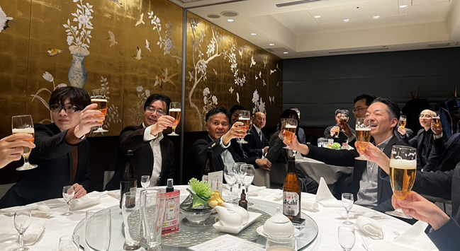 卒塾式後は華湘(かしょう)池袋東武店に移動して、卒塾パーティーが開催されました。OBの方々も参加され、会場は終始にぎやかで温かい雰囲気に包まれました。テーブルでは、この一年で得た経験をどう次の行動につなげるか、そして今後どのように活動の幅を広げていくかといった“これから”の話題が自然と広がりました。「来年度はどんな挑戦をするか」「自分の強みをどう磨くか」「どんな場で発信していくか」など、未来を見据えた前向きな会話が飛び交い、互いの背中を押し合う空気が生まれていました。